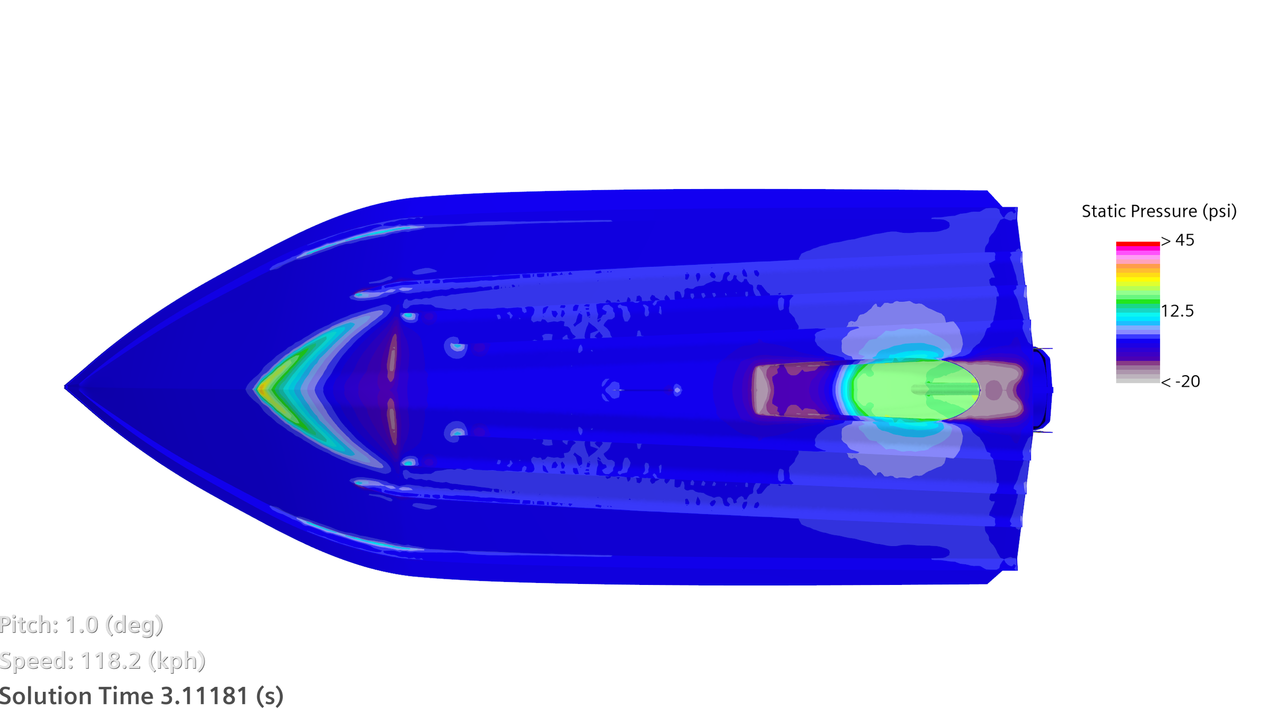 High-performance jet boats operate in an exceptionally demanding hydrodynamic environment, where strong coupling exists between the hull, propulsion system, and the surrounding free surface. At high speeds, even small changes in pressure distribution or flow attachment can lead to large changes in trim and handling. Unchecked cavitation, and air ventilation can degrade handling characteristics or, in extreme cases, compromising safety. During on-water testing of a prototype jet boat, severe instability was observed at high speed, resulting in a sudden and unpredictable loss of control. The behaviour was highly transient and only occurred once a critical speed threshold was exceeded, making it difficult to safely reproduce through traditional testing. This case study demonstrates how advanced Computational Fluid Dynamics (CFD) modelling in STAR-CCM+ was used to identify the root cause of the instability and guide a robust design solution (Figure 1).